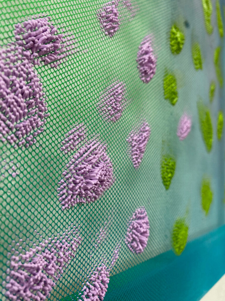 Serie I Jute and Dots: #211, 2023, Acrylfarbe auf Jute auf Holz, 40 x 70 cm